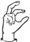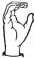 На ћирилици написано ВУКОСАВ СКРОЗА састоји се из 13 слова [?]. Исписано ћириличном једноручном азбуком за глувонеме: